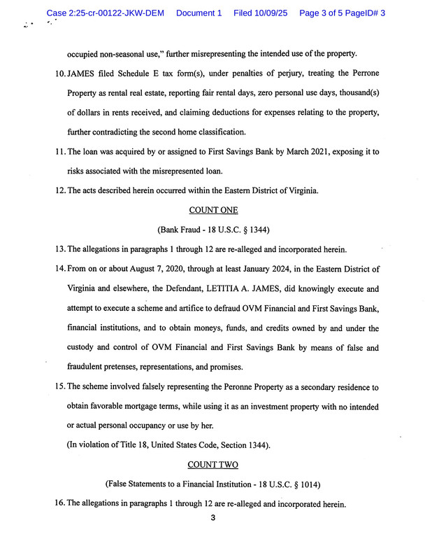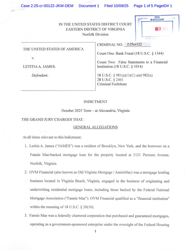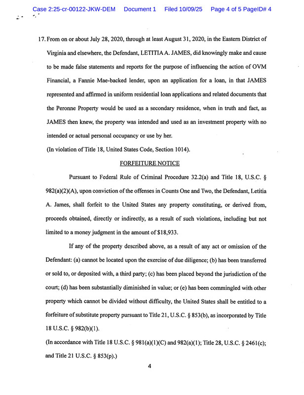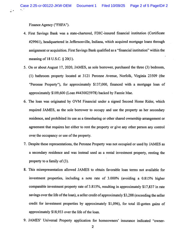 The indictment today involved a property she purchased in August 2020. She signed a "Second Home Rider." That is a rider that indicates you will use the home as a second home for the first year. They are accusing her of violating that rider by renting the property.