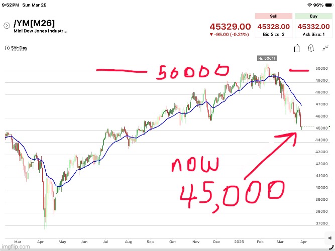 This chart is the last year under Trump and when they bragged about 50,000 Dow.