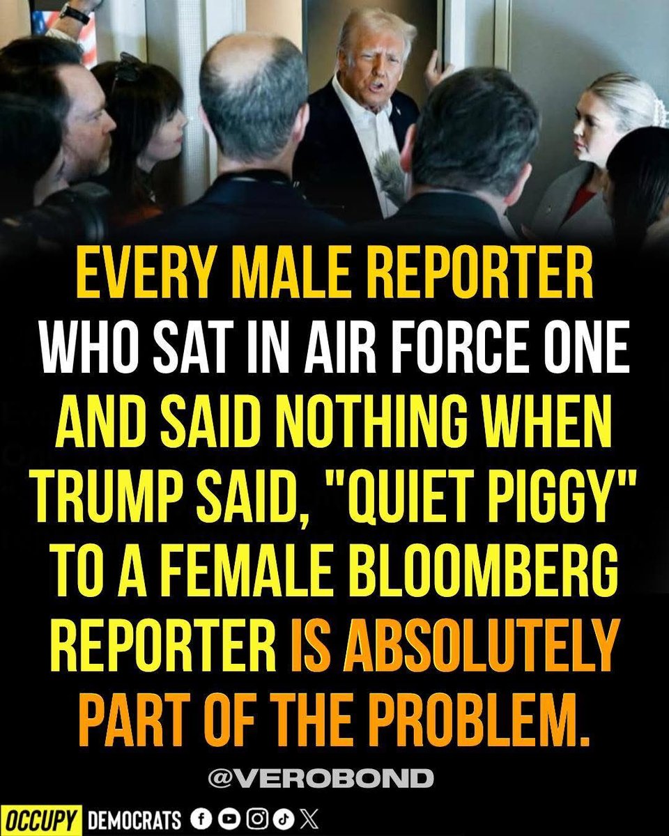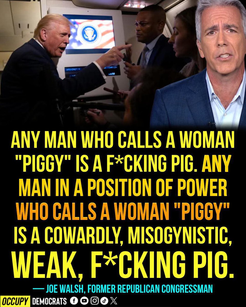 "His voice slithered out in a low, patronizing hiss he saves for women he cannot overpower. 'Quiet. Quiet, piggy.' Twice, like an incantation. Like a command. As if sheer repetition could shove her back into the centuries-old posture women have been forced to fold into around men like him. He stared at her as if she were trespassing on his delusional throne. As if her question about the Epstein files, about the girls, about the truth, was a personal insult to his flimsy manufactured majesty. As if she did not deserve to breathe the same pressurized cabin air he had already polluted with ego, fantasy, and rot."
